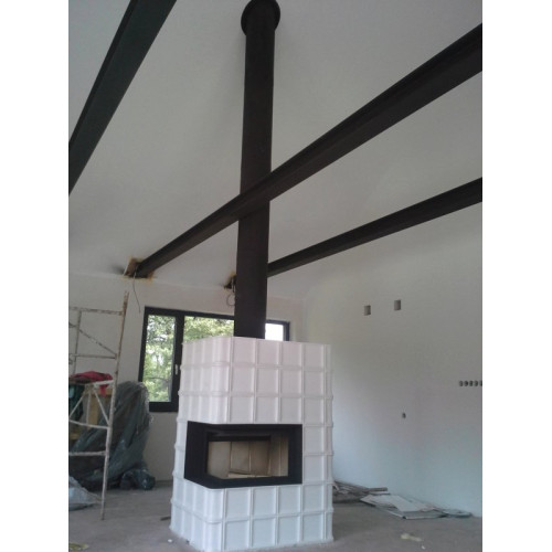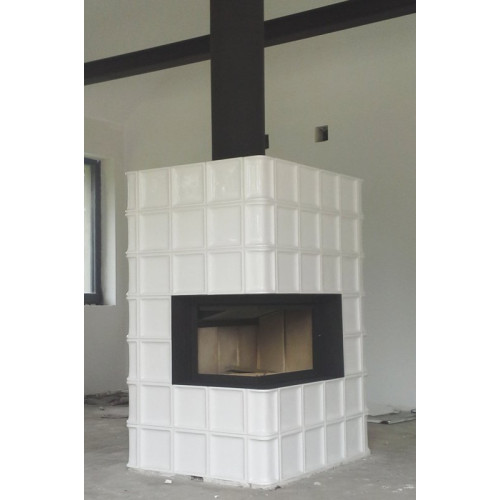 Piec kaflowy wolnostojący z wkładem żeliwnym Godin 660101 Kafle w kolorze białym..
