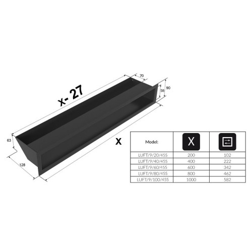 kratka wentylacyjna do kominka luft 9 x 40 grafitowy