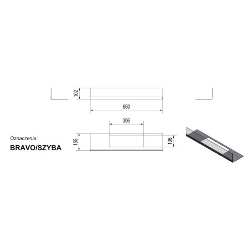 przeszklenie do kominka BRAVO - szyba i podstawa