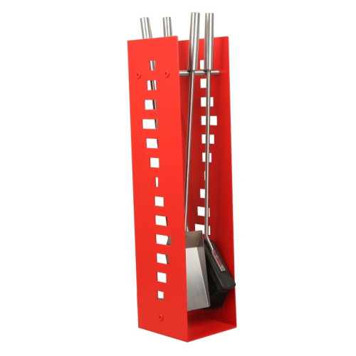 Nowoczesny zestaw akcesoriów kominkowych w kolorze czerwonym